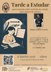 “Tarde a Estudar”, é um workshop destinada aos nossos alunos e respetivos encarregados de educação. Esta sessão, orientada por um docente da Academia de Amadores de Música de Lisboa, abordará métodos de estudo eficazes, organização do trabalho individual e estratégias para promover um estudo mais autónomo e produtivo.